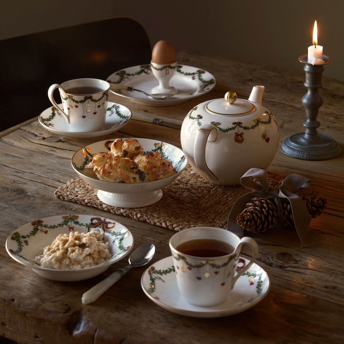 Manchmal ist es nur das richtige Porzellan, welches eine Tafel in der Adventszeit zu einem Highlight macht. Vielleicht noch ein bisschen umrundende Dekoration – Tannenzweige und Plätzchen und schon wirkt es wie eine gedankliche Reise an den schönsten Weihnachtsort.
